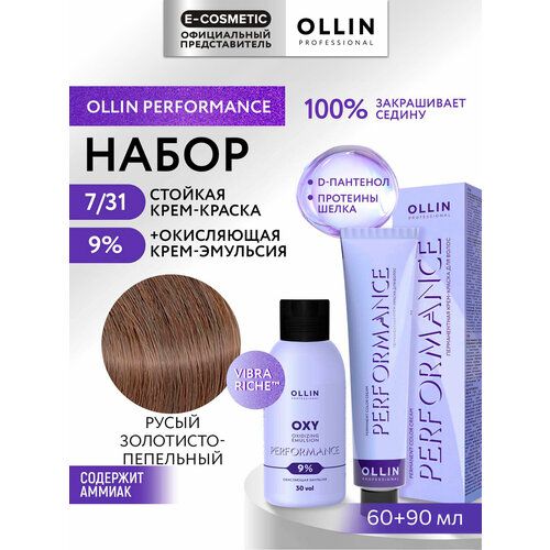 НАЙТИ ВЫГОДНЕЕ - Набор для волос OLLIN PROFESSIONAL Performance: краска 7/31 русый золотисто-пепельный + эмульсия 9 %, 60+90 мл