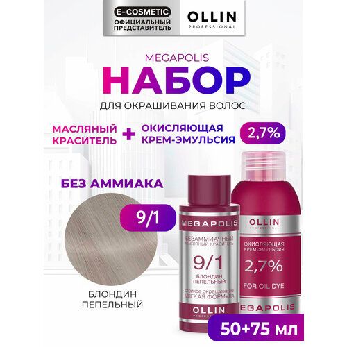НАЙТИ ВЫГОДНЕЕ - Набор для окрашивания волос OLLIN PROFESSIONAL Megapolis: краска для волос 9/1 + крем-эмульсия 2,7 %, 50+75 мл