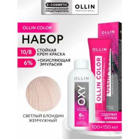 НАЙТИ ВЫГОДНЕЕ - Набор для волос OLLIN PROFESSIONAL Ollin Color: краска 10/8 светлый блондин жемчужный и эмульсия 6 %, 100+150 мл