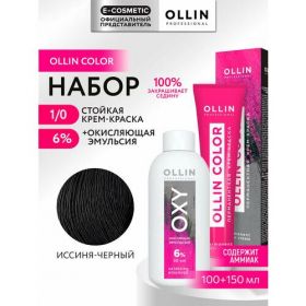 НАЙТИ ВЫГОДНЕЕ - Набор для волос OLLIN PROFESSIONAL Ollin Color: краска 1/0 иссиня-черный + окисляющая эмульсия 6 %, 100+150 мл
