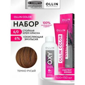 НАЙТИ ВЫГОДНЕЕ - Набор для окрашивания волос OLLIN PROFESSIONAL Ollin Color: краска 6/0 темно-русый + окисляющая эмульсия 6 %, 100+150 мл