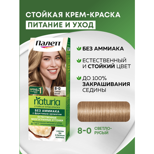 НАЙТИ ВЫГОДНЕЕ - Палетт Naturia Стойкая крем-краска для волос 8-0 Светло-русый, 110 мл