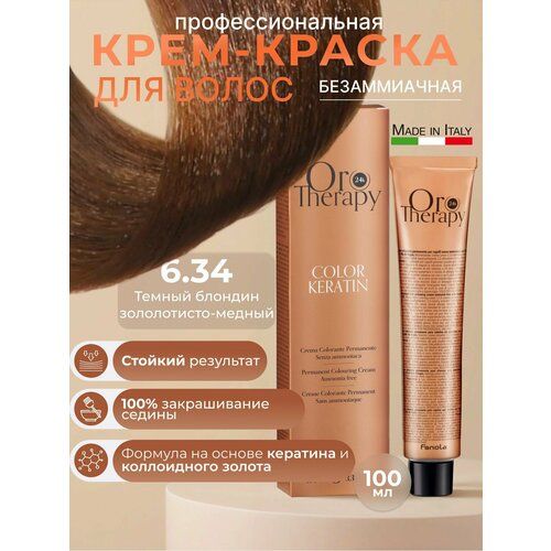 НАЙТИ ВЫГОДНЕЕ - Профессиональный безаммиачный краситель Orotherapy Темный блондин золотисто медный , тон 6.34, 100мл