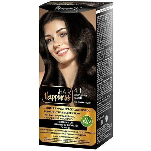 НАЙТИ ВЫГОДНЕЕ - Белита-М Крем-краска для волос HAIR HAPPINESS стойкая тон 4.1 холодный шатен