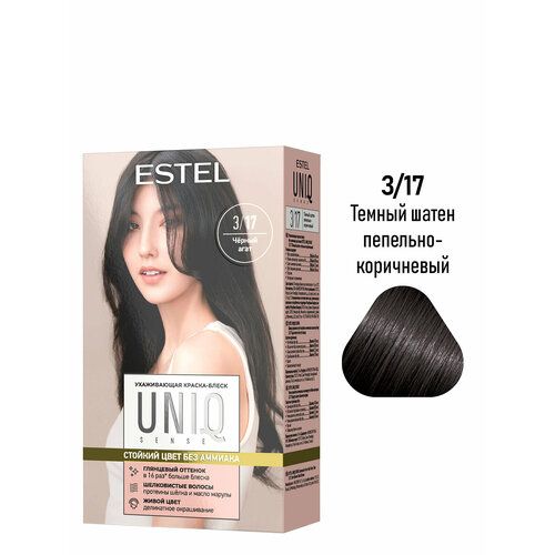 НАЙТИ ВЫГОДНЕЕ - Краска для окрашивания волос ESTEL Uniq Sense 3.17 темный шатен пепельно-коричневый 40+80+45 мл