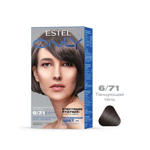 Краска-гель для волос ESTEL ONLY 6.71 темно-русый коричнево-пепельный. Набор краска-гель 50 мл ESTEL ONLY и окисляющая эмульсия 6% 50 мл подходит для всех типов волос, обеспечивает равномерный и глубокий цвет на натуральных, окрашенных и седых волосах. Перманентный аммиачный краситель обладает уникальной системой окрашивания Color Reflex, которая позволяет цветовым пигментам глубоко проникать в структуру волос по всей длине и надежно фиксироваться внутри. Тонирующая краска ложится ровно, полностью прокрашивает седину, делает цвет насыщенным. Пигмент оттеночной краски позволяет сохранить выразительность и блеск оттенка. Цвет не тускнеет, не вымывается пятнами, а пряди остаются мягкими и блестящими. Благодаря сбалансированной системе ухода стойкая краска не пересушивает, равномерно ложится, делая волосы мягкими и визуально плотнее. Волосы выглядят ухоженными, легко расчёсываются, становятся мягкими, послушными, сильными по всей длине — как после салонного ухода.
