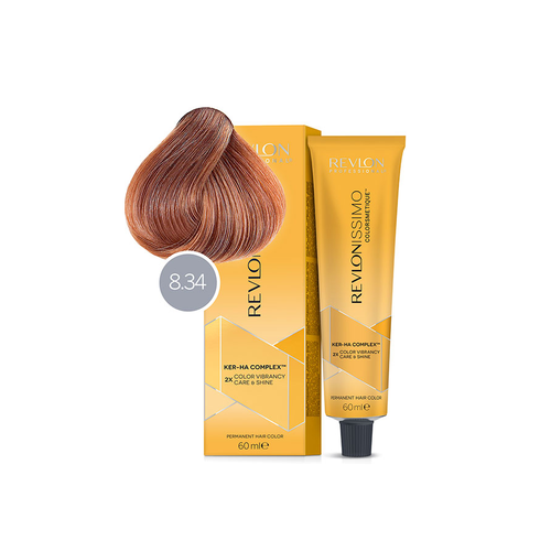 НАЙТИ ВЫГОДНЕЕ - Revlon Professional Revlon Revlonissimo Colorsmetique High Coverage 8.34 - Перманентная краска для седых волос светлый блонд золотисто-медный 60 мл