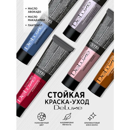 Краска для волос De Luxe Silver от известного бренда ESTEL - это профессиональное средство для окрашивания волос, которое обеспечивает стойкий и насыщенный цвет.