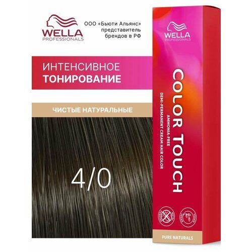 НАЙТИ ВЫГОДНЕЕ - Интенсивная тонирующая крем-краска для волос Wella Professionals Color Touch Pure Naturals 4/0, 60 мл