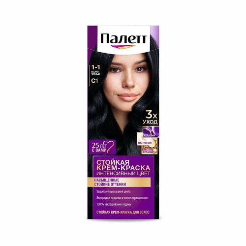 НАЙТИ ВЫГОДНЕЕ - Стойкая крем-краска Палетт Интенсивный цвет, тон: 1-1 (C1) Иссиня-черный, 50 мл