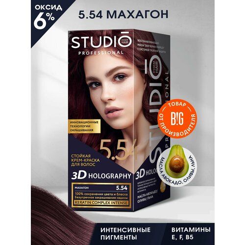 НАЙТИ ВЫГОДНЕЕ - Studio стойкая крем-краска для волос 3Д Голографик 5.54 Махагон 50/50/15 мл