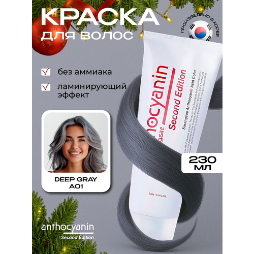 НАЙТИ ВЫГОДНЕЕ - Anthocyanin Серая краска для волос A01 Deep Gray 230 мл ламинирующая без аммиака профессиональная