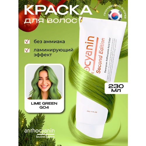 НАЙТИ ВЫГОДНЕЕ - Anthocyanin Зеленая краска для волос G04 Lime Green 230 мл профессиональная без аммиака ламинирующая
