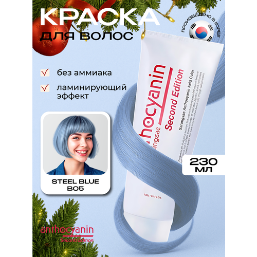 НАЙТИ ВЫГОДНЕЕ - Anthocyanin Голубая краска для волос B05 Steel Blue 230 мл профессиональная без аммиака ламинирующая