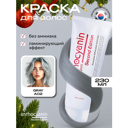 НАЙТИ ВЫГОДНЕЕ - Anthocyanin Серая краска для волос A02 Gray 230 мл ламинирующая без аммиака профессиональная