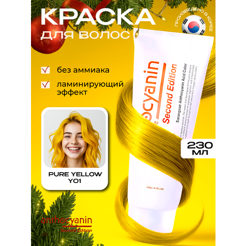 НАЙТИ ВЫГОДНЕЕ - Anthocyanin Желтая краска для волос Антоцианин Y01 Pure Yellow 230 мл ламинирующая без аммиака профессиональная