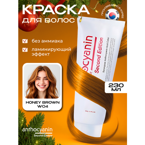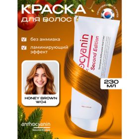 НАЙТИ ВЫГОДНЕЕ - Anthocyanin Коричневая краска для волос W04 Honey Brown 230 мл ламинирующая без аммиака профессиональная