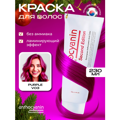 НАЙТИ ВЫГОДНЕЕ - Anthocyanin Пурпурная краска для волос V03 Purple 230 мл ламинирующая без аммиака профессиональная