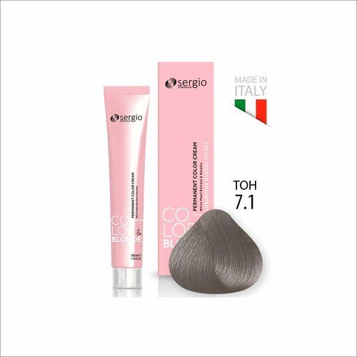 НАЙТИ ВЫГОДНЕЕ - Перманентный краситель для волос 7.1 средне-русый жемчужный, 100 мл, sergio professional