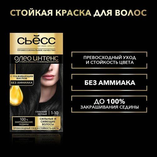 НАЙТИ ВЫГОДНЕЕ - СЬЁСС Олео Интенс Стойкая крем-краска без аммиака, 1-10 Глубокий чёрный, 115 мл