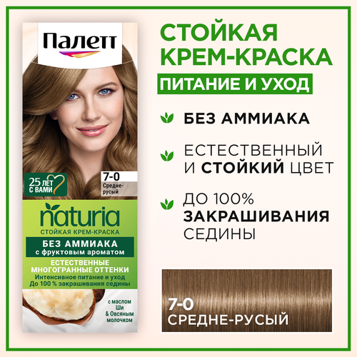 Палетт Naturia Стойкая крем-краска для волос 7-0 Средне-русый, 110 мл 199697147