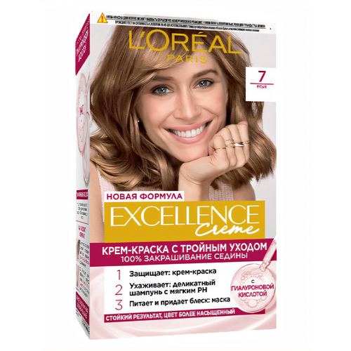 НАЙТИ ВЫГОДНЕЕ - L'Oreal Paris Крем-краска для волос Excellence Creme, 7 Русый, стойкая, Лореаль