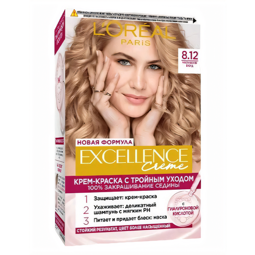 НАЙТИ ВЫГОДНЕЕ - L'Oreal Paris Крем-краска для волос Excellence Creme, 8.12 Мистический блонд, стойкая, Лореаль