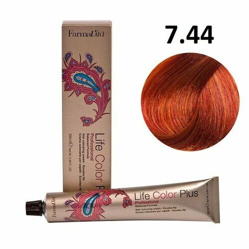 НАЙТИ ВЫГОДНЕЕ - Крем-краска для волос Farmavita Life Color Plus 7.44 блондин насыщенный медный, 100 мл
