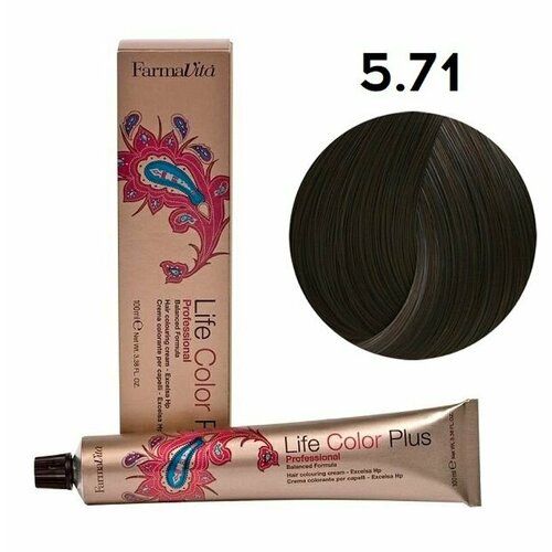 НАЙТИ ВЫГОДНЕЕ - Крем-краска для волос Farmavita Life Color Plus 5.71 средний коричневый кашемир пепельный, 100 мл
