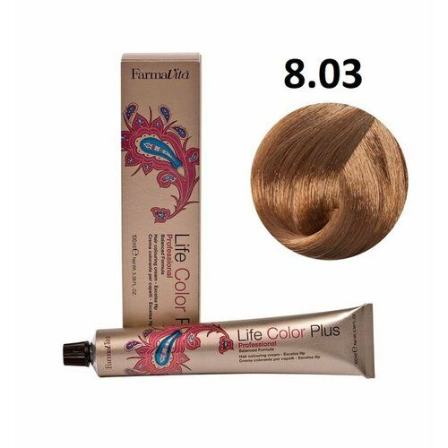 НАЙТИ ВЫГОДНЕЕ - Крем-краска для волос Farmavita Life Color Plus 8.03 теплый светлый блондин, 100 мл