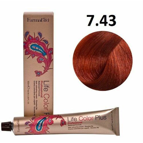 НАЙТИ ВЫГОДНЕЕ - Крем-краска для волос Farmavita Life Color Plus 7.43 блондин золотисто-медный, 100 мл