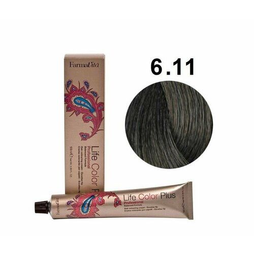 НАЙТИ ВЫГОДНЕЕ - Крем-краска для волос Farmavita Life Color Plus 6.11 темный интенсивный пепельный блондин, 100 мл