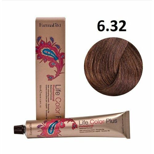НАЙТИ ВЫГОДНЕЕ - Крем-краска для волос Farmavita Life Color Plus 6.32 темный блондин золотистый ирис, 100 мл
