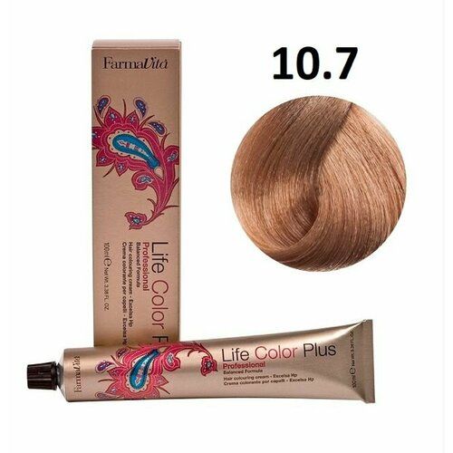 НАЙТИ ВЫГОДНЕЕ - Крем-краска для волос Farmavita Life Color Plus 10.7 очень светлый блондин коричневый кашемир, 100 мл