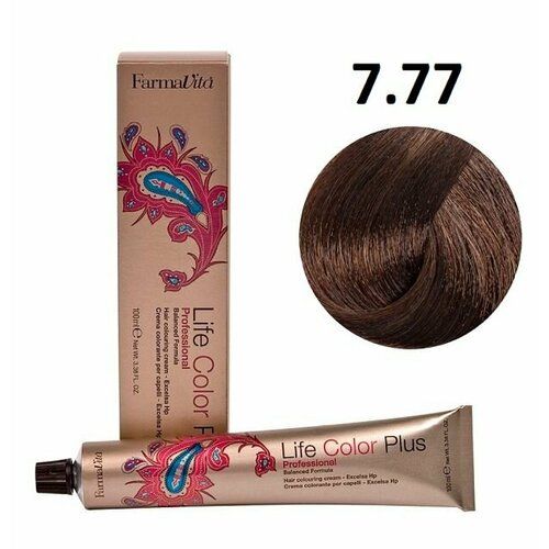 НАЙТИ ВЫГОДНЕЕ - Крем-краска для волос Farmavita Life Color Plus 7.77 блондин интенсивный коричневый кашемир, 100 мл