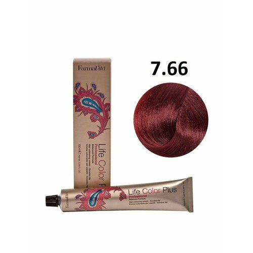 НАЙТИ ВЫГОДНЕЕ - Крем-краска для волос Farmavita Life Color Plus 7.66 блондин насыщенно-красный (алый), 100 мл