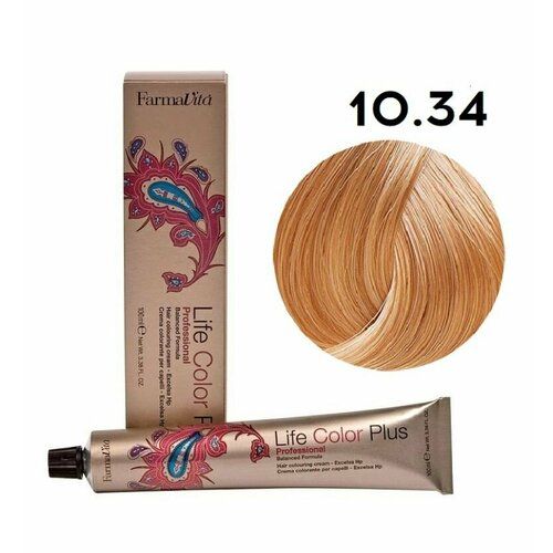 НАЙТИ ВЫГОДНЕЕ - Крем-краска для волос Farmavita Life Color Plus 10.34 платиновый золотисто-медный блондин, 100 м