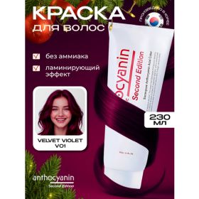 НАЙТИ ВЫГОДНЕЕ - Anthocyanin Фиолетовая краска для волос Антоцианин V01 Velvet Violet 230 мл ламинирующая без аммиака профессиональная