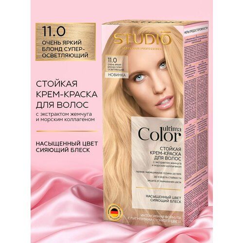 НАЙТИ ВЫГОДНЕЕ - Studio Ultima Color краска для волос 11.0 очень яркий блонд суперосветляющий, 50/50