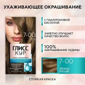 НАЙТИ ВЫГОДНЕЕ - Глисс Кур Стойкая краска для волос Уход & Увлажнение, 7-00 Тёмно-русый, 135 мл