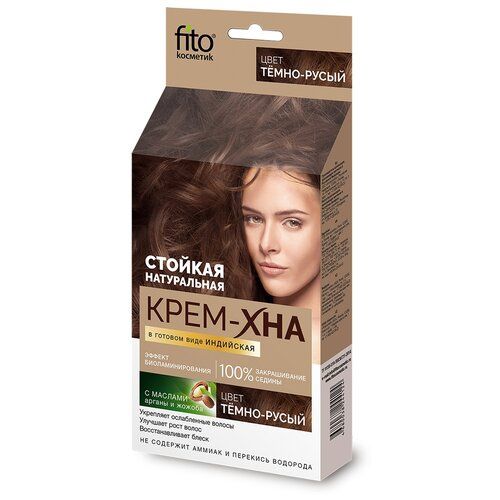 Бренд FITOкосметик (Фитокосметик) - производит натуральную косметику на основе природных компонентов, тщательно отобранных со всех уголков мира. Индийская крем-хна в готовом виде - единственная натуральная растительная краска для стойкого окрашивания и тотального восстановления волос приобретают яркий, стойкий, объемный цвет, становятся более плотными, густыми, эластичными и упругими. Крем-хна безупречно закрашивает седину ее не нужно смешивать с водой, она легко наносится, не течет и очень легко смывается. Особенности: -укрепляет ослабленные волосы -улучшает рост волос -восстанавливает блеск Специальные особенности: не содержит аммиак и перекись водорода