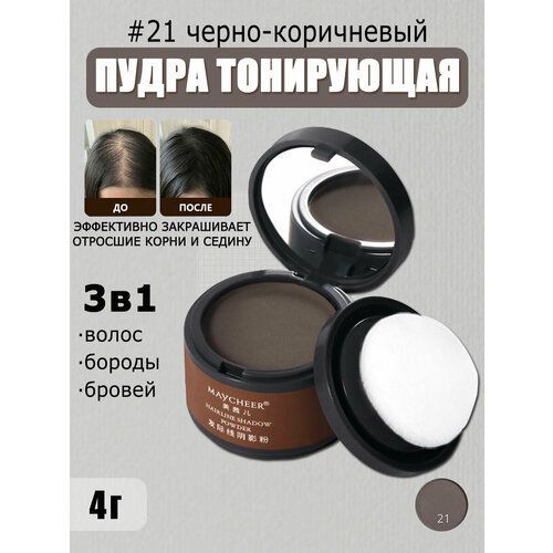 НАЙТИ ВЫГОДНЕЕ - Пудра тонирующая для волос, Тени для закрашивания седины 4г, maycheer, черно-коричневый, маскирующий загуститель