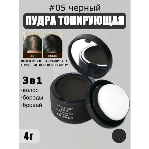 НАЙТИ ВЫГОДНЕЕ - Загуститель, Пудра тонирующая для волос, Тени для закрашивания седины 4г, maycheer, черный