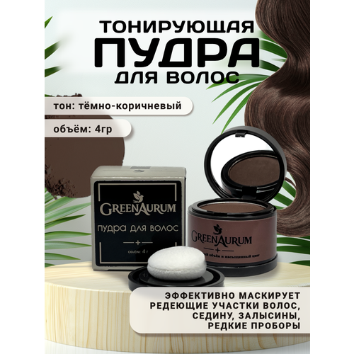НАЙТИ ВЫГОДНЕЕ - Пудра для волос GreenAura, темно-коричневая, для всех типов, 4г