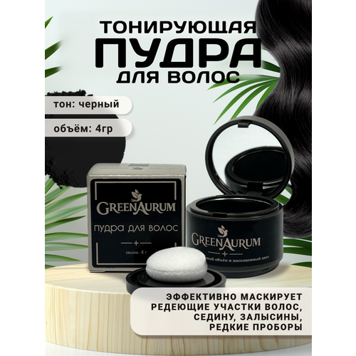 НАЙТИ ВЫГОДНЕЕ - Пудра для волос GreenAura, маскировка корней, черная, 4 гр