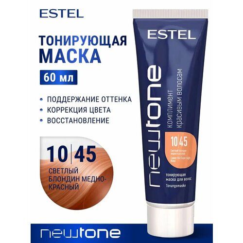 ESTEL PROFESSIONAL Маска NEWTONE для тонирования волос 10/45 Светлый блондин медно-красный, 60 мл – это эффективное средство для коррекции цвета волос и ухода за ними. Оно подходит для всех типов волос и может использоваться на всей длине волос.
