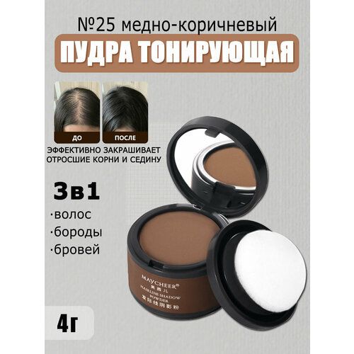 НАЙТИ ВЫГОДНЕЕ - Пудра для волос Тени для закрашивания седины 4г, maycheer, медно-коричневый, оттенок №25