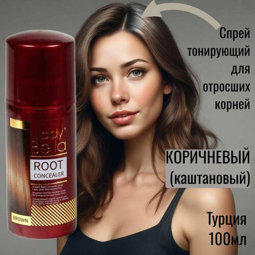 НАЙТИ ВЫГОДНЕЕ - Lady Bella Спрей тонирующий для окрашивания корней и скрытия седины каштановый (коричневый) 100 мл Турция