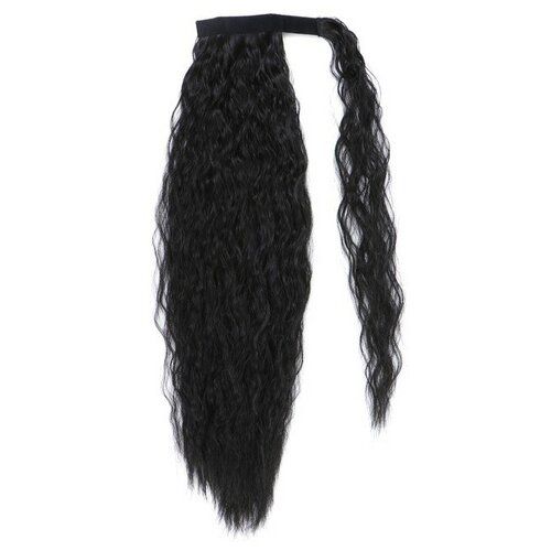 НАЙТИ ВЫГОДНЕЕ - Хвост накладной, волнистый волос, на резинке, 60 см, 100 гр, цвет чёрный(#SHT3)