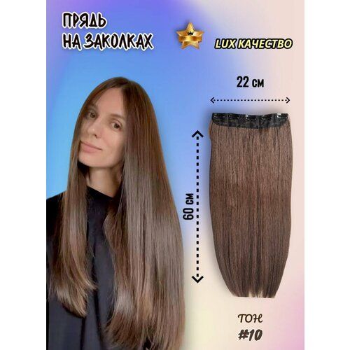НАЙТИ ВЫГОДНЕЕ - Волосы на заколках, прядь для наращивания волос 60см, коричневый шатен